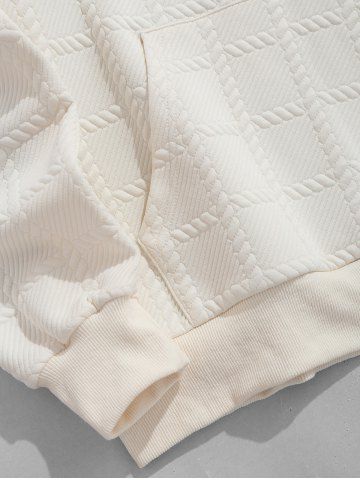 Hoodies & Sweatshirts > Men's Casual Athleisure Letter Patch Design Cable Jacquard Textured Front Pocket Drawstring Long Sleeves Hoodie