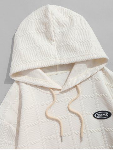 Men's Casual Athleisure Letter Patch Design Cable Jacquard Textured Front Pocket Drawstring Long Sleeves Hoodie - Light Coffee - L