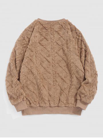 Men's Solid Color Daily Casual Crew Neck Long Sleeve Fluffy Fuzzy Cable Textured Pullover Teddy Sweatshirt - Coffee - S
