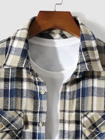 Men's Casual Daily Plaid Cargo Pockets Button Up Long Sleeve Flannel Shirt Jacket Shacket - Light Coffee - Xxl