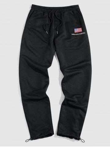 American Flag Embroidery Casual Pants - Black - L