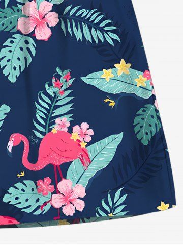 Plus Size Tropical Leaf Hibiscus Flower Flamingo Print Hawaii Drawstring Pocket Beach Shorts For Men - Blue - 7xl