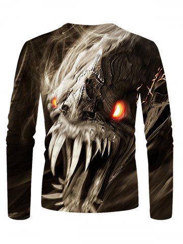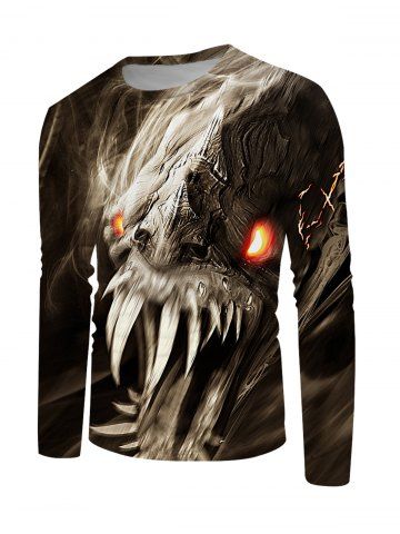 Dinosaur 3D Print Long Sleeve Casual T-shirt - Multi - Xl