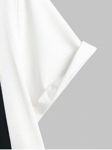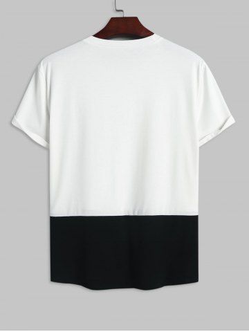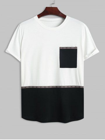Ethnic Style Jacquard Panel Front Pocket Colorblock Two Tone T-shirt - Black - S