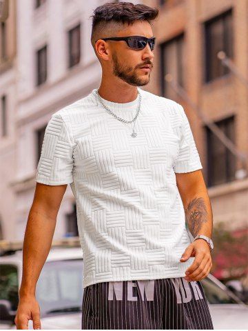 Jacquard Towel Cloth Textured Short Sleeves T-shirt - White - Xxl