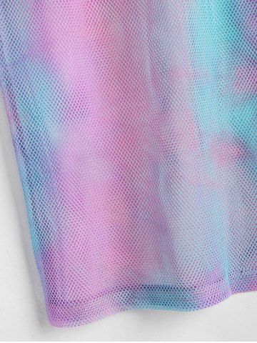 Loose Sheer Mesh Tie Dye Tank Top - Multi - S