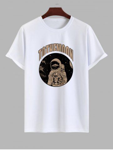 Men's Astronaut Galaxy Letters Print T-shirt - White - S