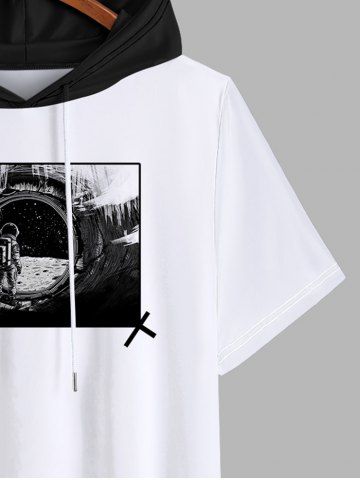 Men's Astronaut Photo Print Drawstring Hooded T-shirt - White - 6xl