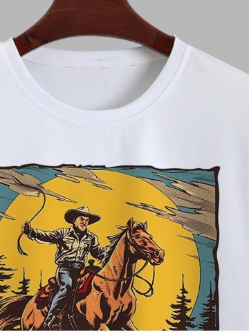 Men's Cowboy Riding Horse in Sunset Graphic Print T-shirt - White - 3xl