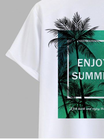 Men's Galaxy Colorblock Coconut Tree Enjoy Summer Print Hawaii T-shirt - White - 3xl