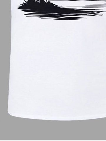 Plus Size Coconut Tree Bird Seascape Print Hawaii T-shirt For Men - White - S