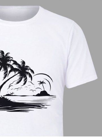 Plus Size Coconut Tree Bird Seascape Print Hawaii T-shirt For Men - White - 6xl