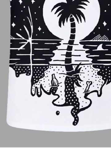Plus Size Coconut Tree Sea Skull Wizard Print Hawaii T-shirt For Men - White - L
