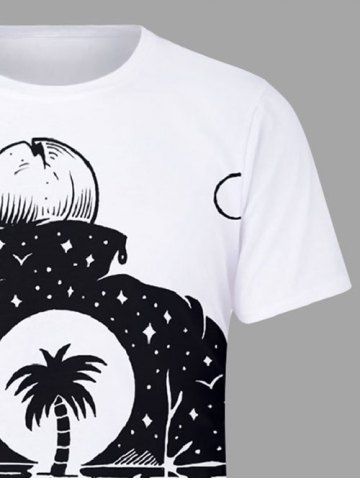 Plus Size Coconut Tree Sea Skull Wizard Print Hawaii T-shirt For Men - White - Xl