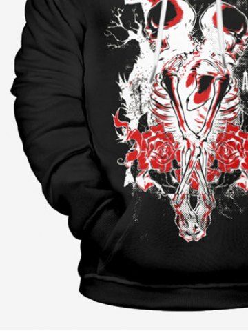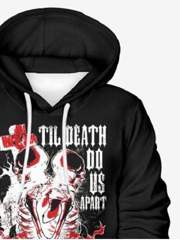 Plus Size Skeleton Lovers Flower Cross Letters Print Valentines Pocket Drawstring Pullover Long Sleeves Hoodie For Men - Black - M