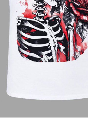 Plus Size Skull Skeleton Hat Rose Flower Leaf Print Valentines T-shirt For Men - White - 4xl