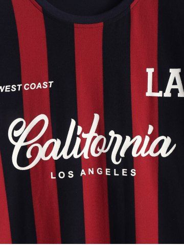 Short Sleeves Blokecore California LA Striped T Shirt - Red - M