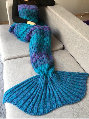 Fish Scale Crochet Knit Home Decor Mermaid Blanket Throw - Turquoise
