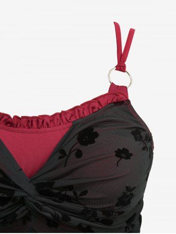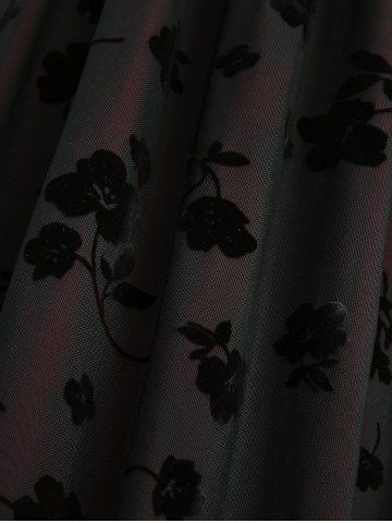 Gothic Plus Size Flower Flocking Twist Lace Up Crisscross Strappy Handkerchief Dress - Deep Red - L | Us 12