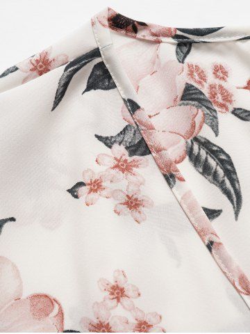 Plus Size Vacation Flower Print Tied Side Surplice Flounce Asymmetrical Hem Midi Wrap Dress - White - 3x
