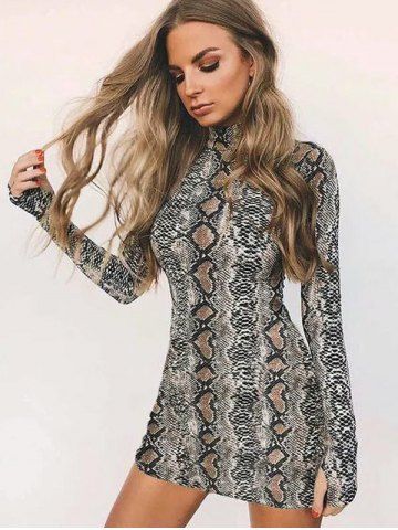 Long Sleeves Snake Print Mini Dress - Multi - L
