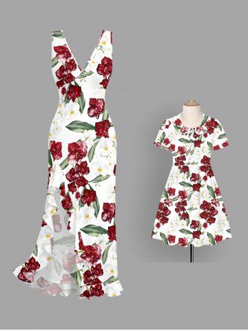 Mommy and Me > Tropical Leaf Flower Print Matching Hawaii Beach Mommy & Me Outfit