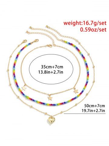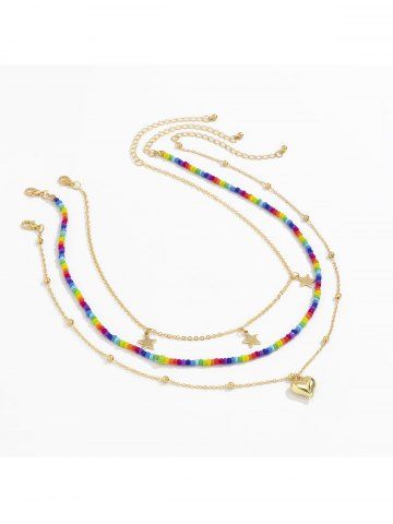 3Pcs Vintage Colorful Beaded Love Star Pendant Necklace - Multi