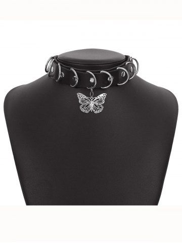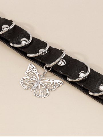 Gothic D Ring Butterfly Pendant Choker Necklace - Black