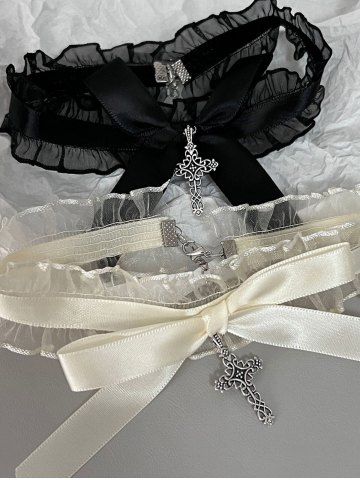 Necklaces > Gothic Lace Bow Cross Collar