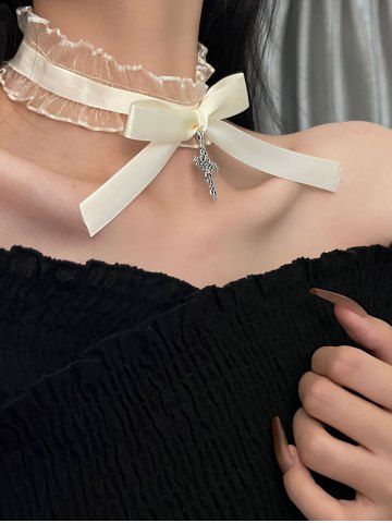 Gothic Lace Bow Cross Collar - White