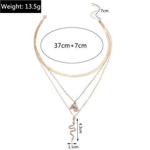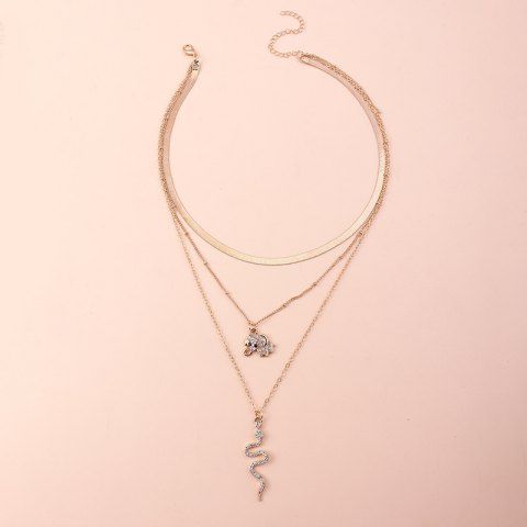 Layered Elephant Snake Pendant Choker Necklace - Golden