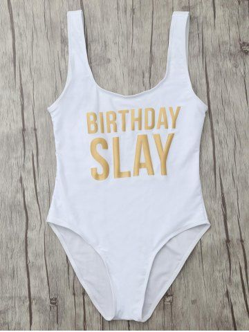 Letter Unlined One Piece Swimsuit - White - M