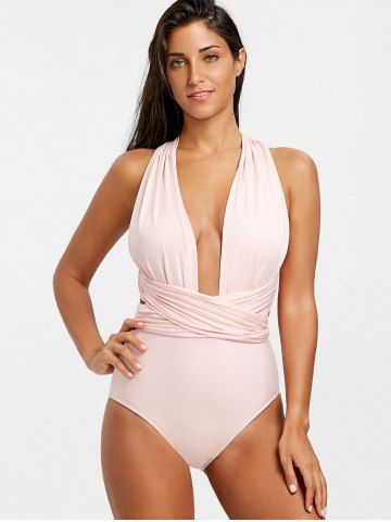 Criss Cross Plunging Neck Swimwear - Light Pink - Xl