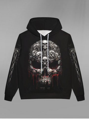 Gothic 3D Bloody Skulls Chains Print Pocket Drawstring Fleece Lining Hoodie For Men - Black - 5xl