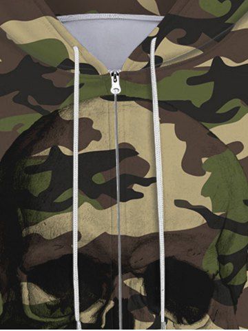 Gothic 3D Camouflage Skull Print Zipper Pockets Drawstring Hoodie For Men - Green - 2xl