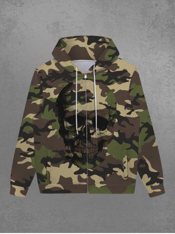 Outerwear > Gothic 3D Camouflage Skull Print Zipper Pockets Drawstring Hoodie For Men
