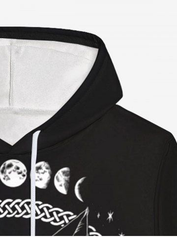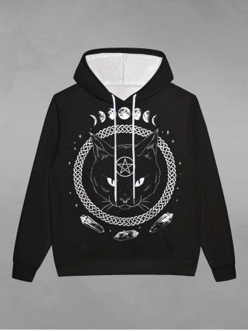 Gothic 3D Cat Moon Braided Star Print Pocket Drawstring Hoodie For Men - Black - S