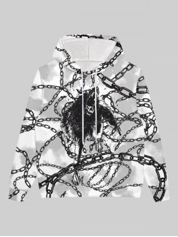 Gothic 3D Chain Wolf Tie Dye Print Drawstring Hoodie For Men - White - 4xl
