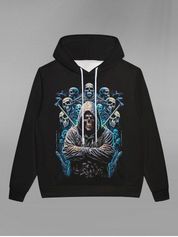 Gothic 3D Colorful Skulls Mans Print Pocket Drawstring Fleece Lining Halloween Pullover Hoodie For Men - Black - 2xl
