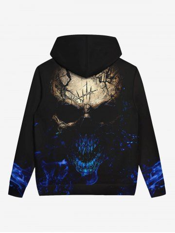 Gothic 3D Distressed Skull Glitter Print Halloween Drawstring Hoodie For Men - Black - 4xl