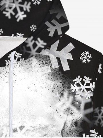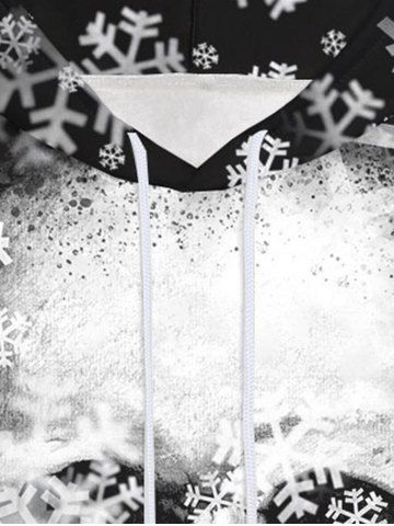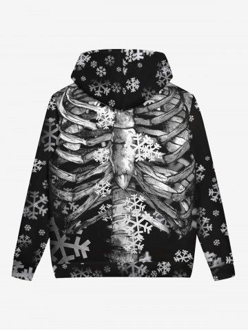 Gothic 3D Distressed Skull Skeleton Snowflake Print Pocket Drawstring Fleece Lining Halloween Pullover Hoodie For Men - Black - 2xl