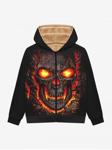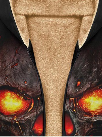 Gothic 3D Fire Flame Skull Print Halloween Full Zipper Pockets Fleece Lining Hoodie For Men - Black - S