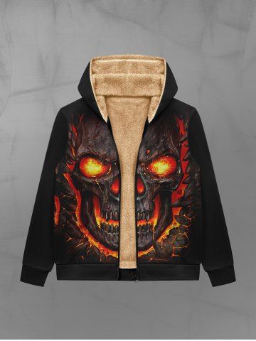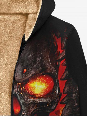 Gothic 3D Fire Flame Skull Print Halloween Full Zipper Pockets Fleece Lining Hoodie For Men - Black - 6xl