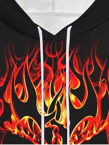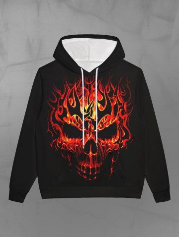 Gothic 3D Fire Flame Skull Print Halloween Pocket Drawstring Hoodie For Men - Black - 6xl