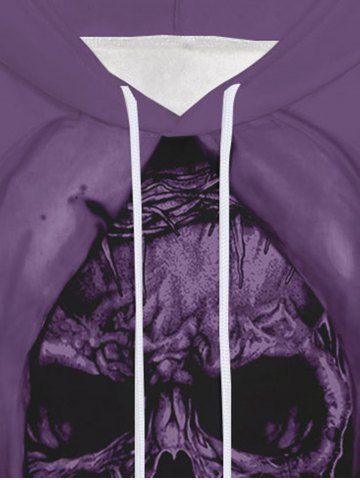 Gothic 3D Ripped Skull Print Pocket Drawstring Halloween Fleece Lining Pullover Hoodie For Men - Purple - Xl