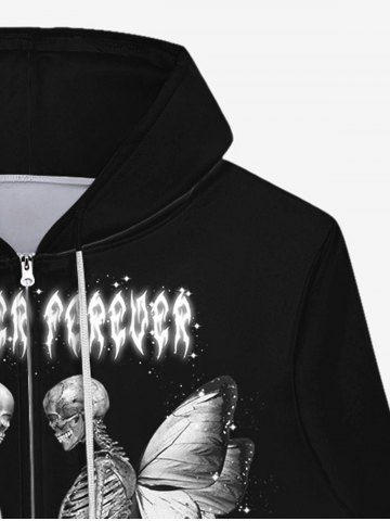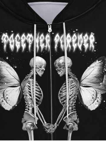 Gothic 3D Skeleton Butterfly Print Zipper Pockets Drawstring Halloween Hoodie For Men - Black - 5xl
