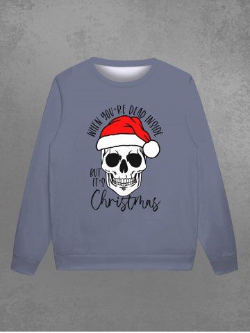 Gothic 3D Skull Letters Christmas Hat Print Sweatshirt For Men - Light Purple - 3xl