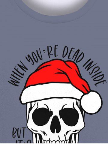 Gothic 3D Skull Letters Christmas Hat Print Sweatshirt For Men - Light Purple - 5xl
