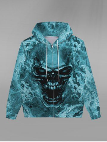 Outerwear > Gothic 3D Skull Waves Print Zipper Pockets Drawstring Hoodie For Men