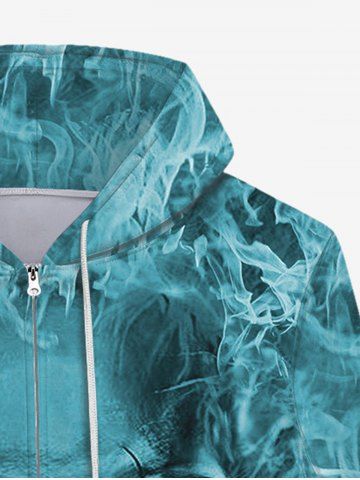 Gothic 3D Skull Waves Print Zipper Pockets Drawstring Hoodie For Men - Blue - 3xl